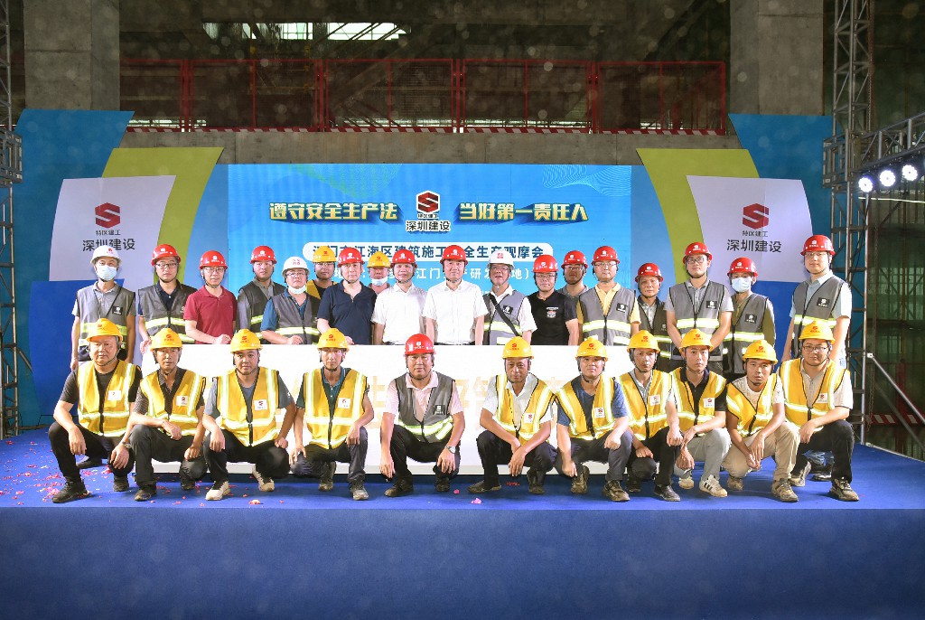 6月12日,江门市江海区中欧官方网站_中欧(中国)施工安全生产观摩现场会在建设集团承建的金多多江门生产研发基地项目举行。江门市江海区住建局总工程师彭洁芸、江门中欧官方网站_中欧(中国)业协会代理秘书长谭荣铮,阿麦斯江门金多多生产研发基地项目总经理马红帆、副总经理王晓琴,深圳建设集团党总支副书记石宏伟、副总裁李蕃荣、安全总监余南华等出席活动。