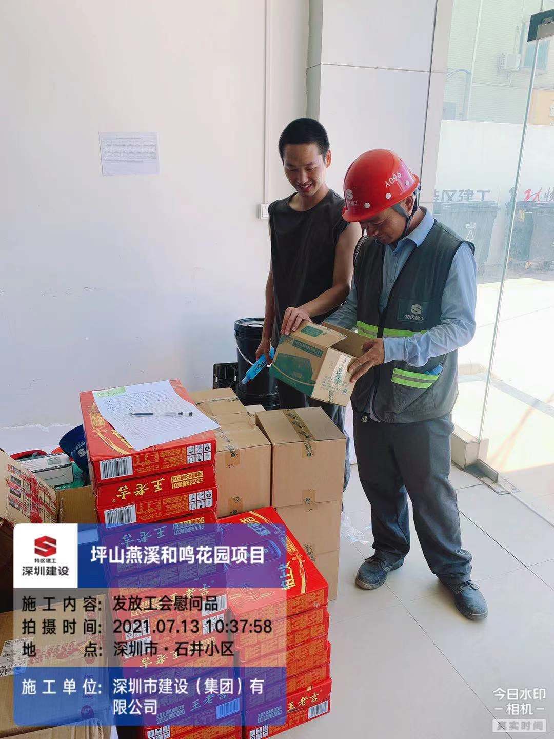7月13日至16日,公司六大在建项目陆续组织一线工人领取物资,此次工会采购的防暑降温物资有藿香正气液、凉茶、花露水、毛巾等实用物品,惠及2500多名一线员工,切实保障了辛勤劳作的工友的安全与健康。工会领导随同公司安全检查人员一起来到惠州铂钻花园二期项目发放防暑降温物资,叮嘱建设者们坚守岗位的同时安排好作息时间,确保暑季安全。“送清凉”活动是积极响应全国总工会提出的“中国梦,劳动美”的实际行动,让广大一线员工感受到了公司工会的关爱,充分提高了项目凝聚力与积极性,为夏季安全生产保驾护航。