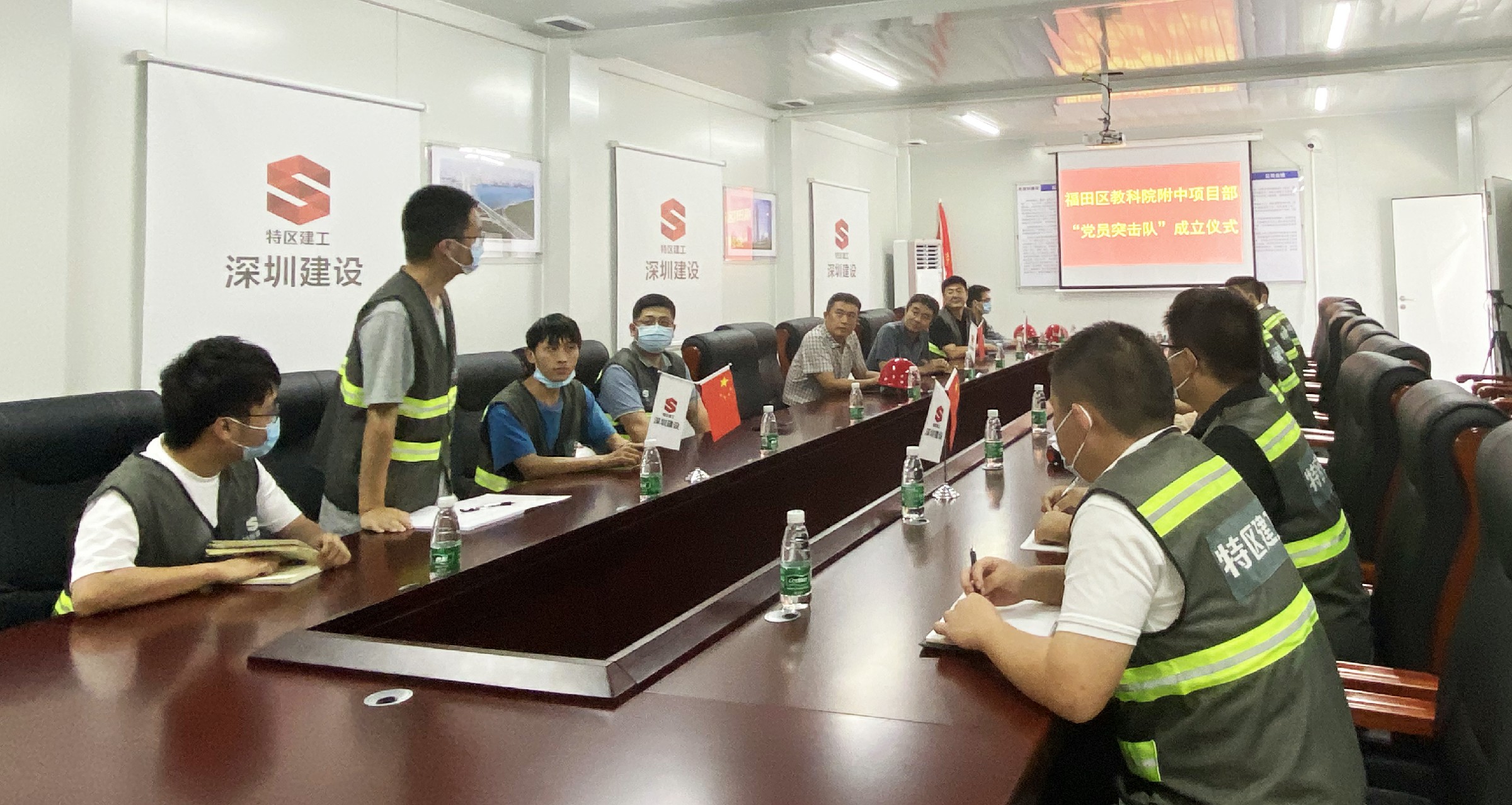 为促进党建与项目生产相融合,激发一线党员、青年干事创业热情,6月28日下午,福田区教科院附中项目举行了“党员突击队”启动仪式,建设集团党总支书记、董事长兼总裁黄海,副书记石宏伟出席仪式。